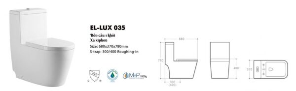 Eurolife EL-LUX 035 (White) Premium One-Piece Toilet with Nano Snow Ceramic Glaze and Soft-Closing Lid