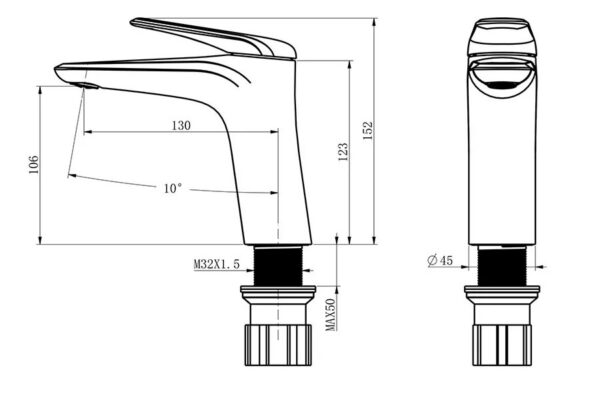 * Material: The product is gravity cast with a 61% copper alloy, chrome and nickel plated (Ni – 10 microns, Cr – 0.3 microns). It has a high gloss finish and resists stains.