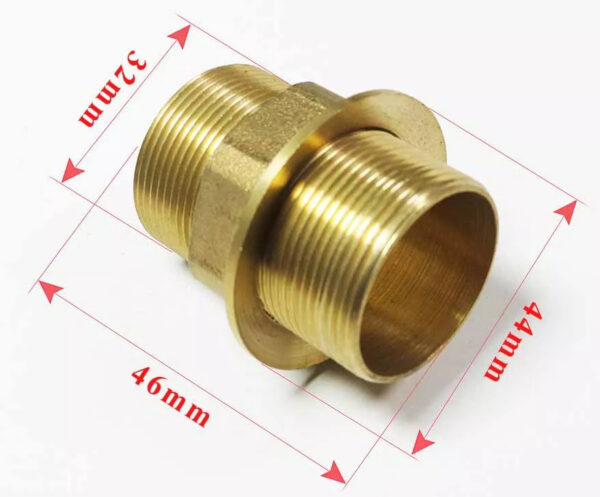 Durable brass mounting plate, 32mm thread, suitable for various sink mounting holes. The tightening plate has a diameter of 44mm. Mounting pipe length is 46mm, allowing for installation on many thick countertops.