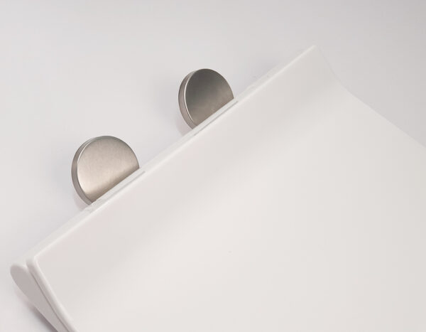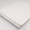 Installation is simple with a push-button operation. Once the two latches are positioned correctly on the toilet, simply press the latch and push it into place. For cleaning or replacement, simply press the button and easily remove the product from the toilet.