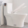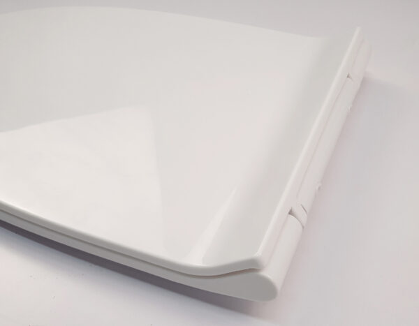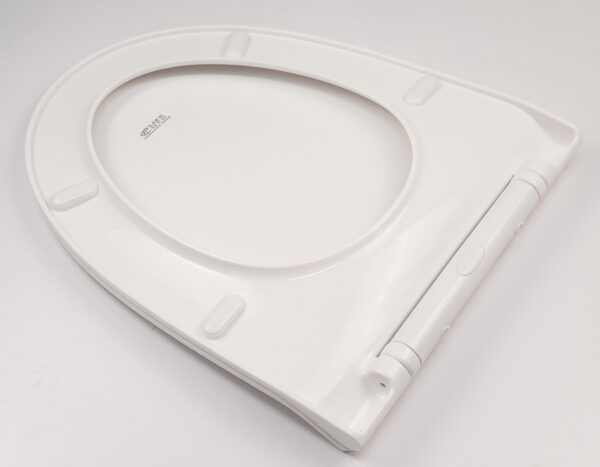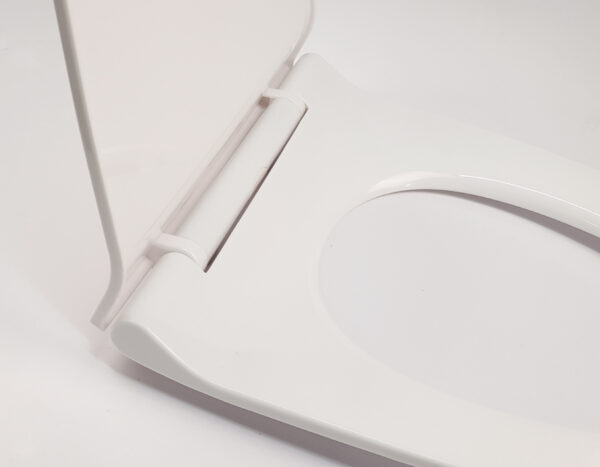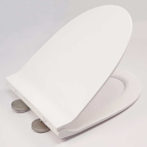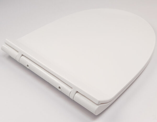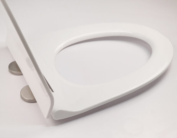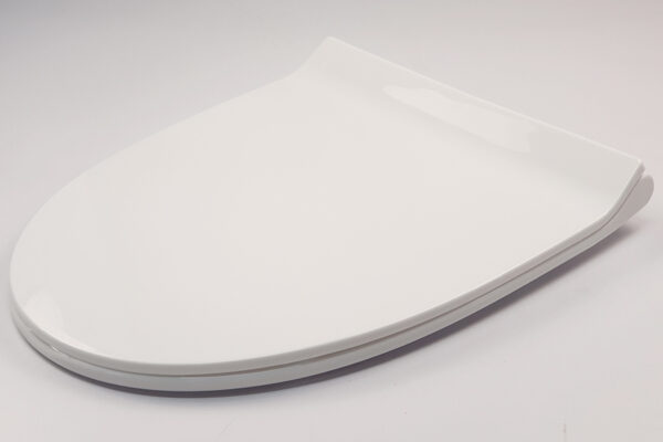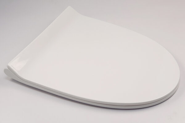 The lid closes very smoothly and quietly, preventing strong impacts that could damage the toilet bowl.