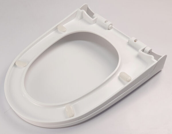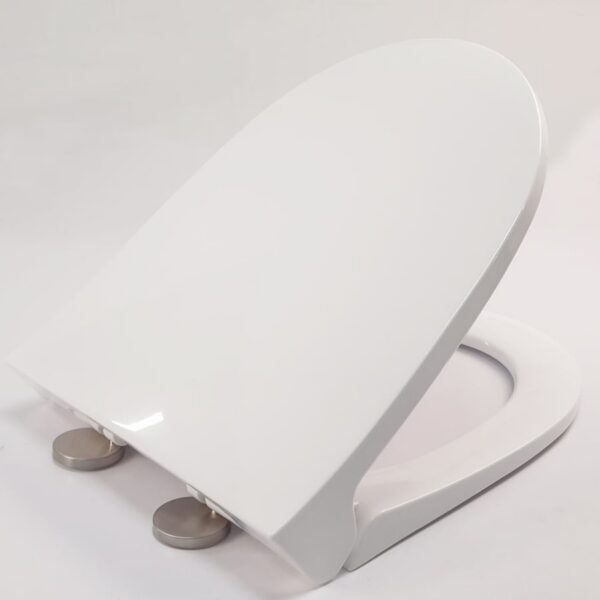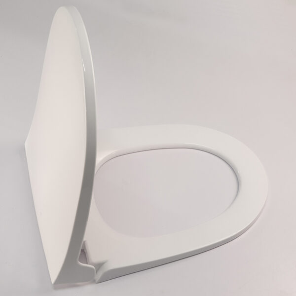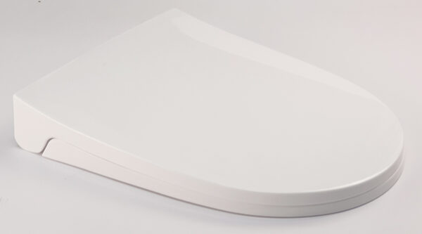 The lid closes very smoothly and quietly, preventing strong impacts that could damage the toilet bowl.