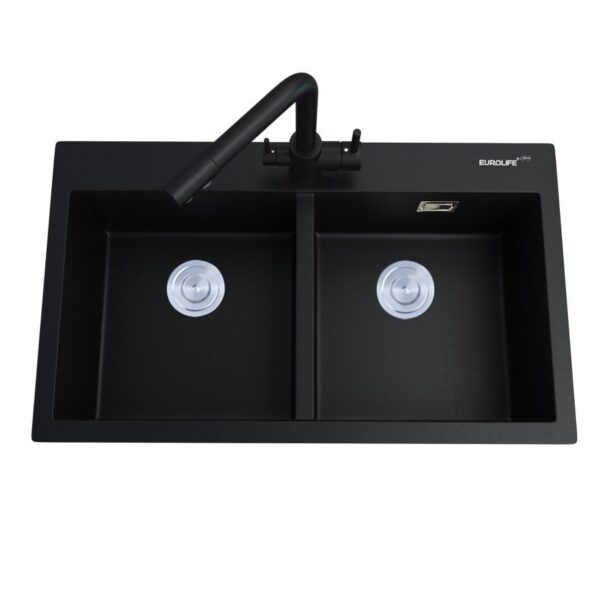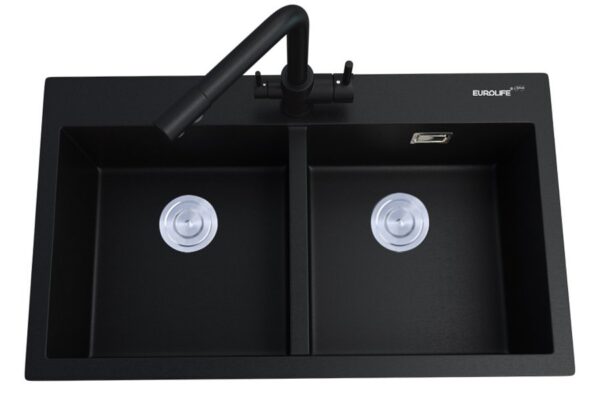 Eurolife EL-QC8349 Double Bowl Kitchen Sink, Quartz Stone