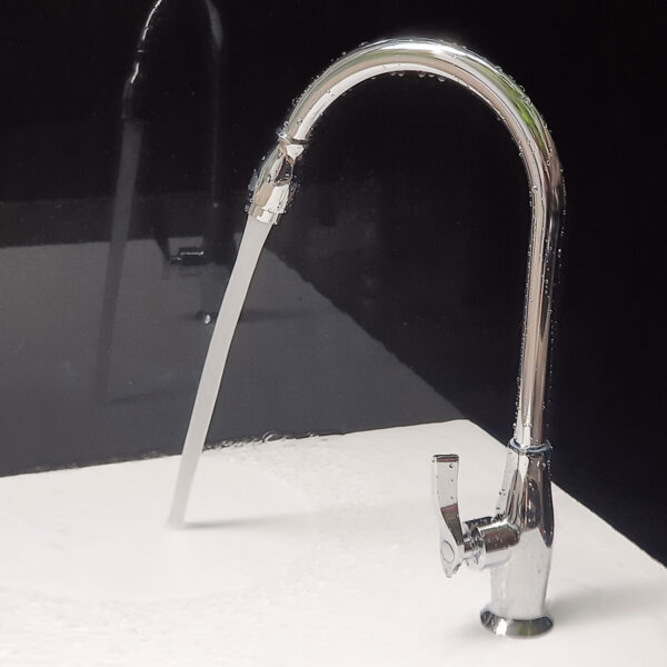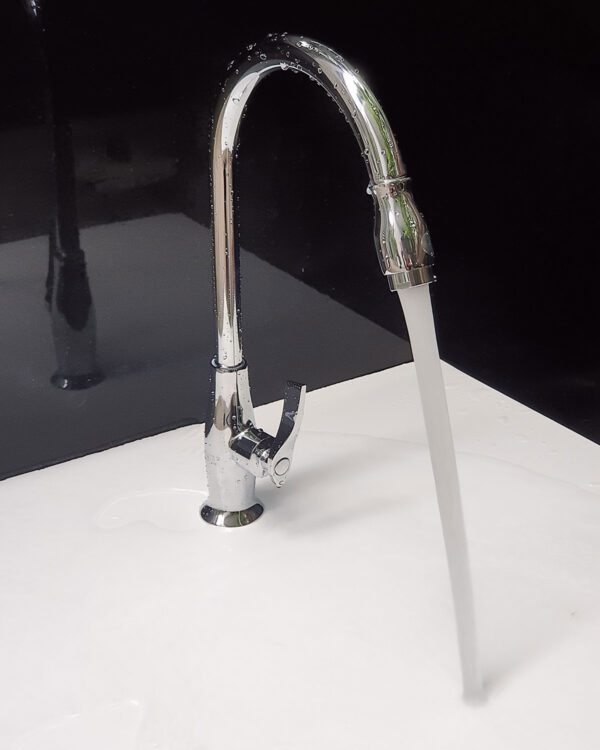 - The pipe rotates 360 degrees, making it convenient for use with double-basin sinks.