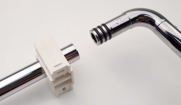 The faucet has two ends. One end has a 21mm thread suitable for a pipe connection, and the other end has two round rubber gaskets for connecting to the faucet body. Made of high-quality brass, it will not break during installation.