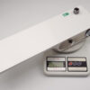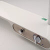 This single-function shower head is made from milky white ABS plastic with a shiny chrome trim. The shower hose is 150cm long.