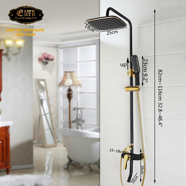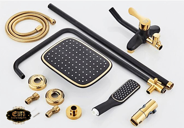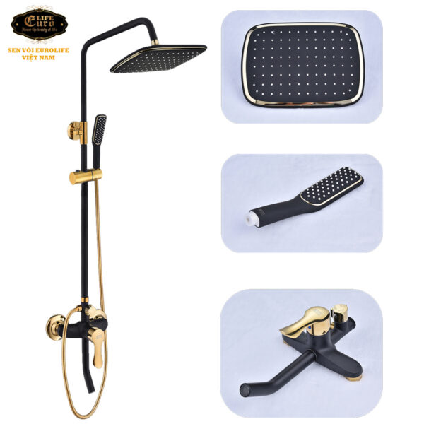 Eurolife EL-S914 Hot and Cold Standing Shower Set (Black and Gold). A classy and luxurious product.