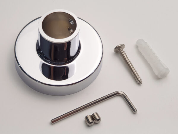 The shower pipe holder is cast from alloy, chrome-plated for a bright finish, and easy to install with just one screw and the included tackle.