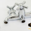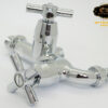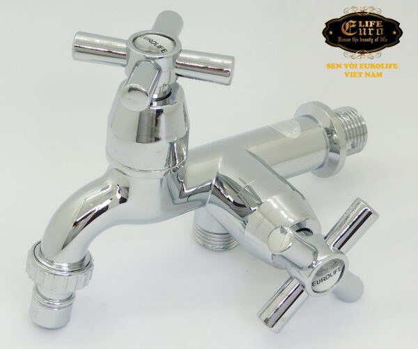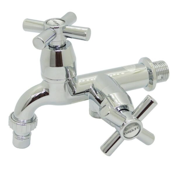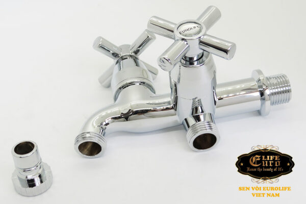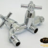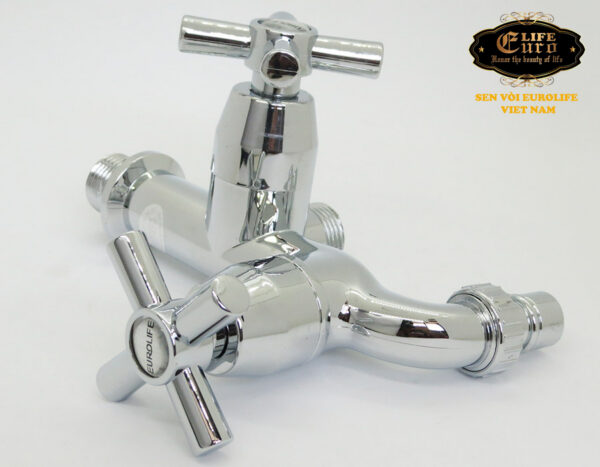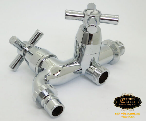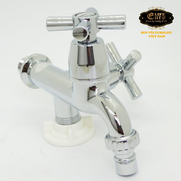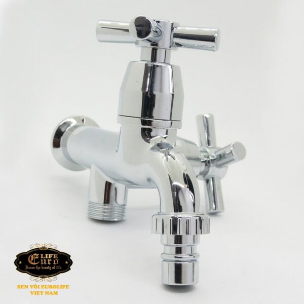 The handle is designed in a cross shape for easy opening and closing of the water supply.