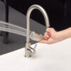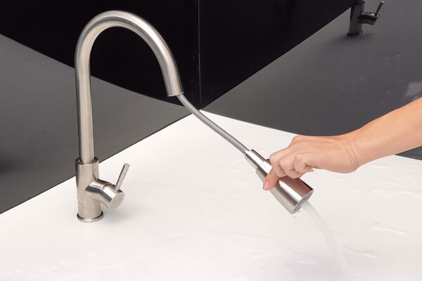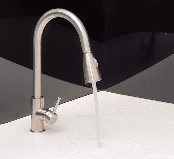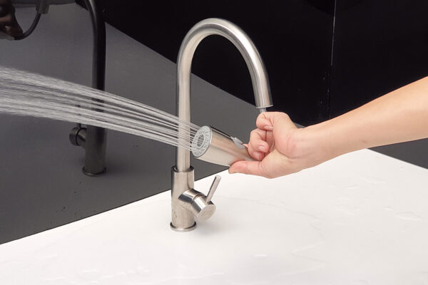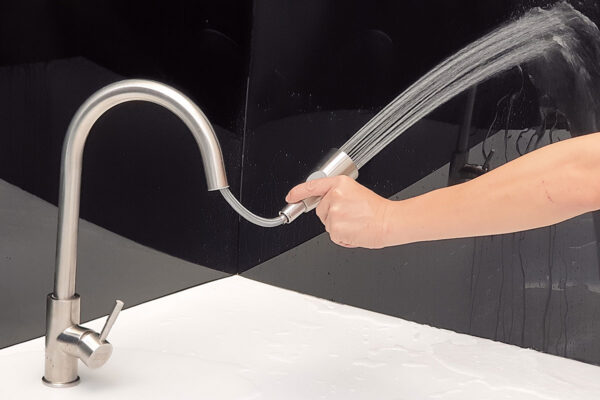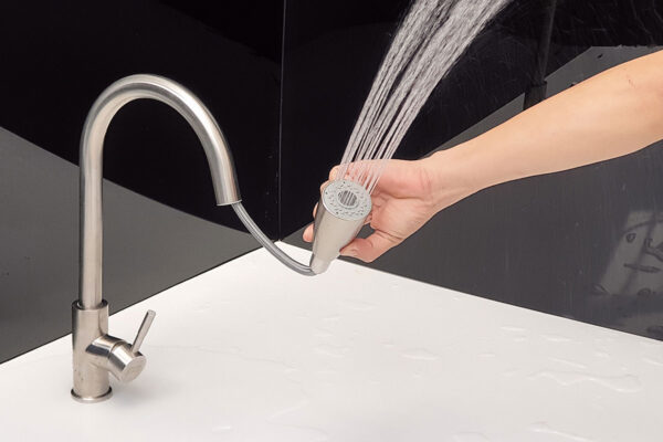 The water stream is strong but doesn’t splash like regular faucets, helping to keep the kitchen drier.