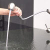 The hose rotates 360 degrees, directing the water flow wherever needed. The 360-degree rotating hose can be fitted to the faucet body and can be used with a water tap handle on the left, right, or front of the faucet.