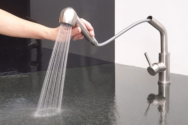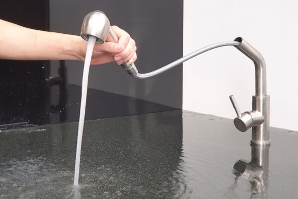 The water stream is strong but doesn’t splash like regular faucets, helping to keep the kitchen drier.