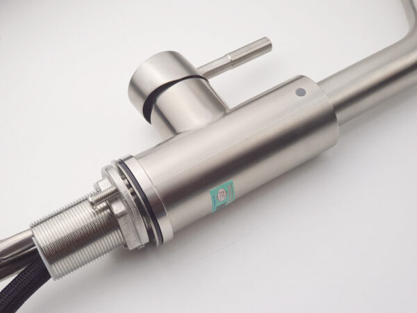The durable brass mounting plate has a 32mm thread, suitable for pre-drilled holes in all types of kitchen sinks. The tightening plate has a diameter of 44mm. The mounting tube length is 46mm, allowing it to be fitted to many thick countertops.