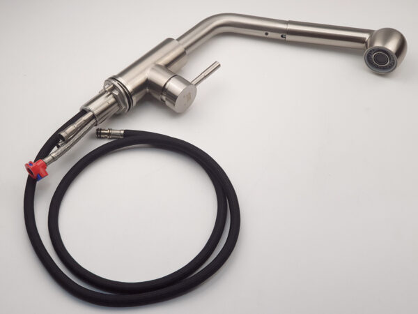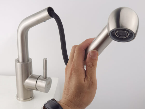 The nozzle can be pulled out from the faucet body, allowing users to move the nozzle to areas far from the washing area, which is very convenient.