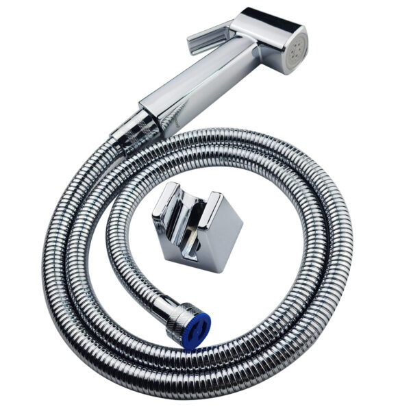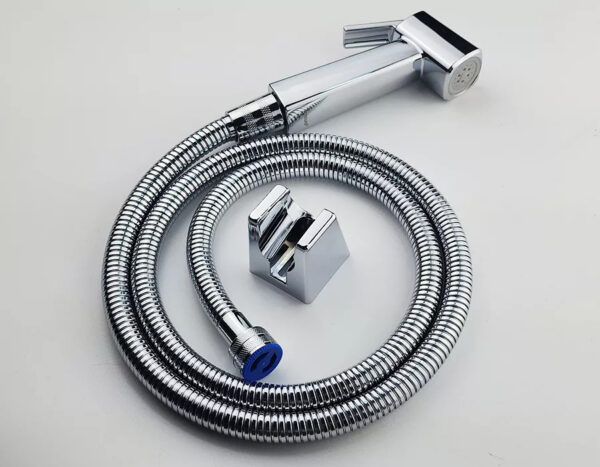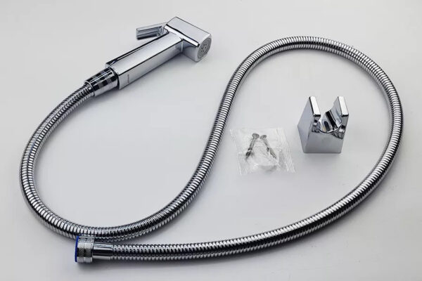 The spray set comes with a single-position mounting bracket. Made of high-gloss chrome-plated ABS plastic, matching the handle and spray hose.
