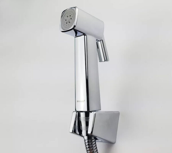 The spray handle is made of health- and environmentally friendly ABS plastic, with a shiny chrome plating. ABS plastic is a hard, high-strength plastic that won’t break when dropped like PVC plastic, and it’s also safe for users’ health.