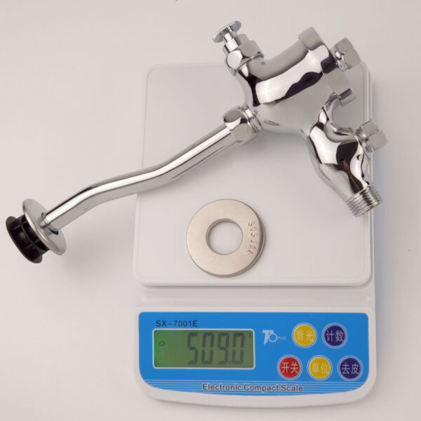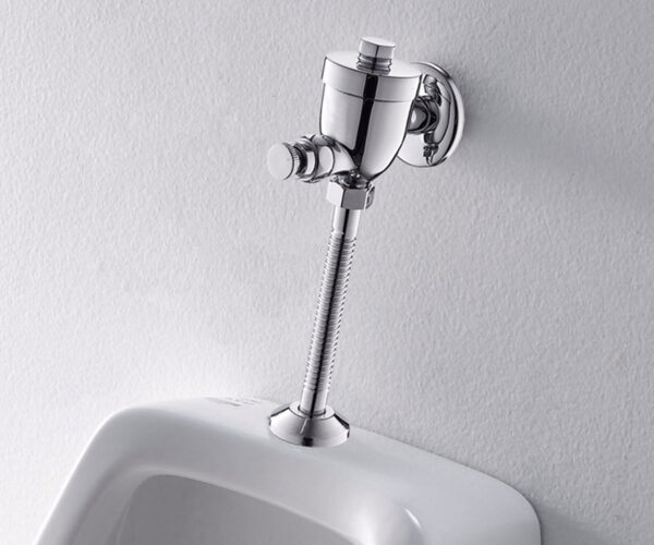 This urinal flush valve features a delay button and a durable steel spring. It recoils within 7 to 10 seconds, thoroughly flushing the urinal. A convenient product for homes, offices, restaurants, and more.