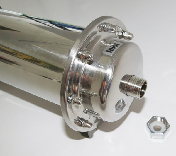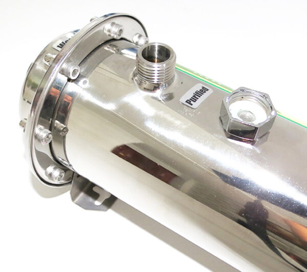 Under-sink water filter, 0.1 micron ultrafiltration membrane, SUS 304 stainless steel casing, Eurolife EL-600UF, directly connects to kitchen faucet.