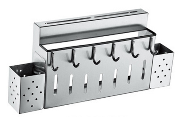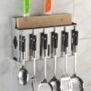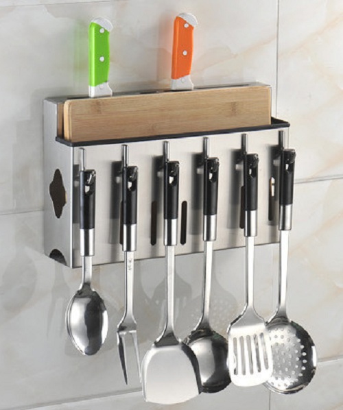 Ngoài ra kệ còn có thể treo vá-muỗng lớn, và phụ kiện bếp với 6 móc treo phía mặt bên ngoài kệ, rất tiện dụng.