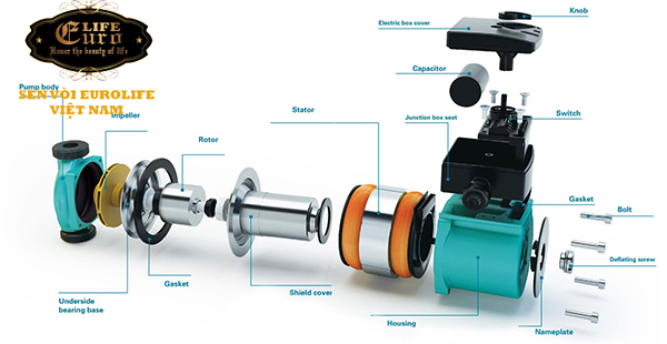 Công nghệ: trục máy được làm bằng Ceramic nên bơm tăng áp EUROLIFE có thể bơm được nước nóng