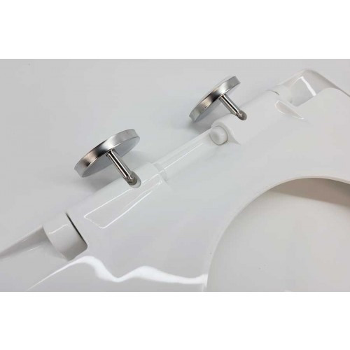 Bát gắn sản nắp bồn cầu được làm từ Inox với các tackle nở giúp nắp định vị chắc chắn với bồn cầu, không lỏng lẻ khi sử dụng. Tackle có thể điều chỉnh dễ dàng, phù hợp với khoảng cách của các lỗ chờ trên thân bồn cầu.
