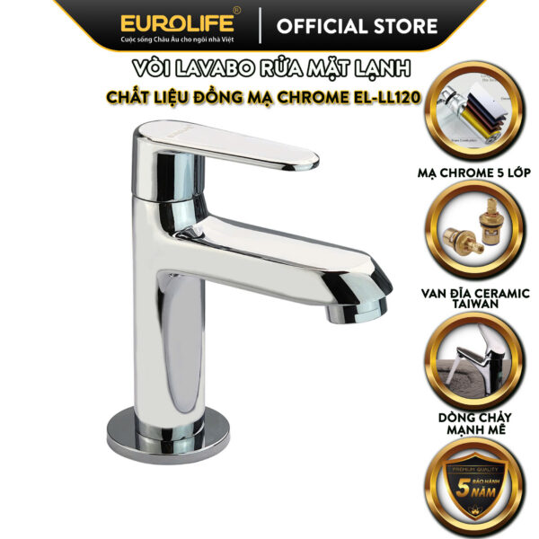 Vòi Lavabo lạnh chất liệu Đồng mạ Chrome Eurolife EL-LL120 (Trắng bạc)