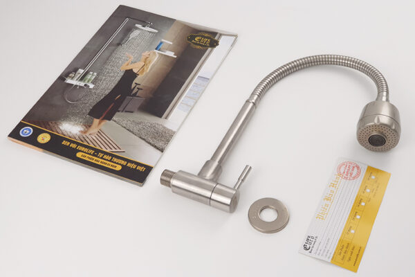 Thân vòi được thiết kế với cần lò xo linh động thuận tiện cho việc rửa ráy