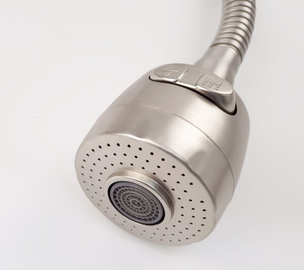 Đầu vòi với 2 chế độ xả: Xả tăng áp và xả xối, giúp việc rửa ráy thuận tiện hơn.